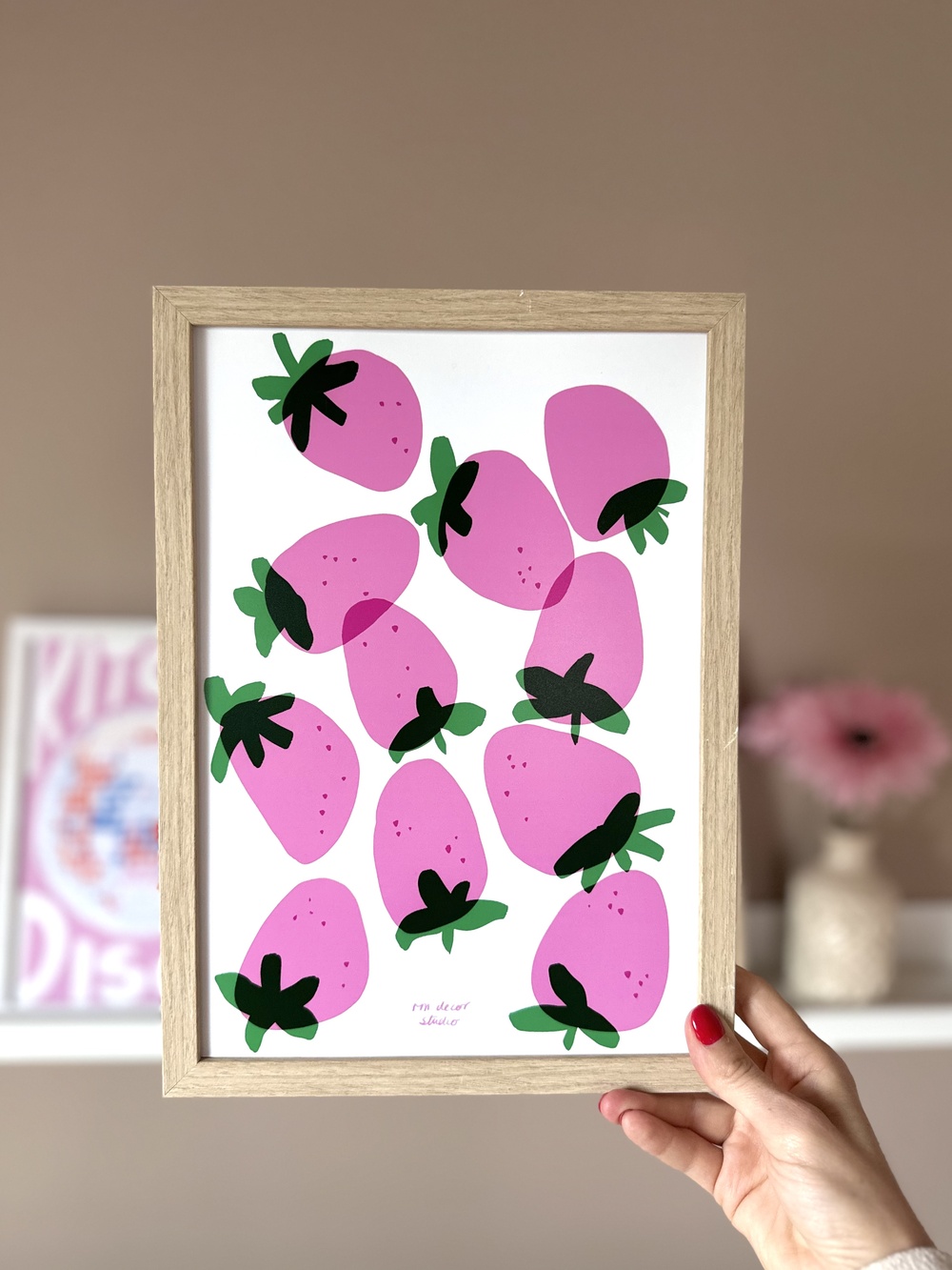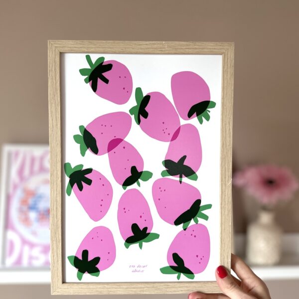 Invitez la douceur et la gourmandise dans votre décoration intérieure avec l’affiche « Rose Fraise », une illustration pop et joyeuse inspirée des fruits d’été.
