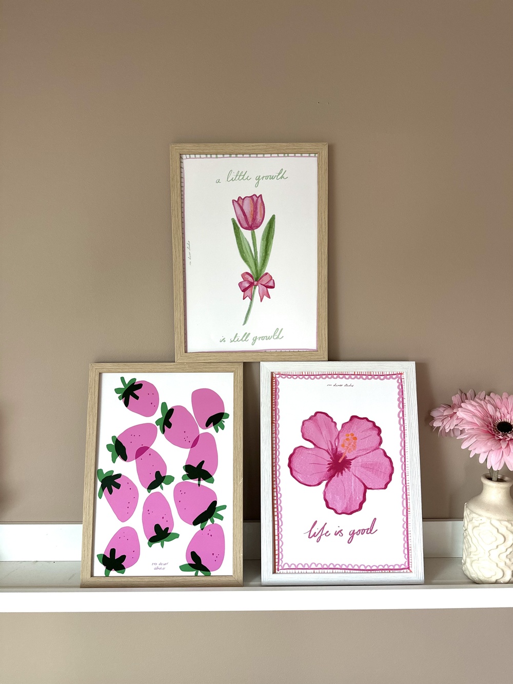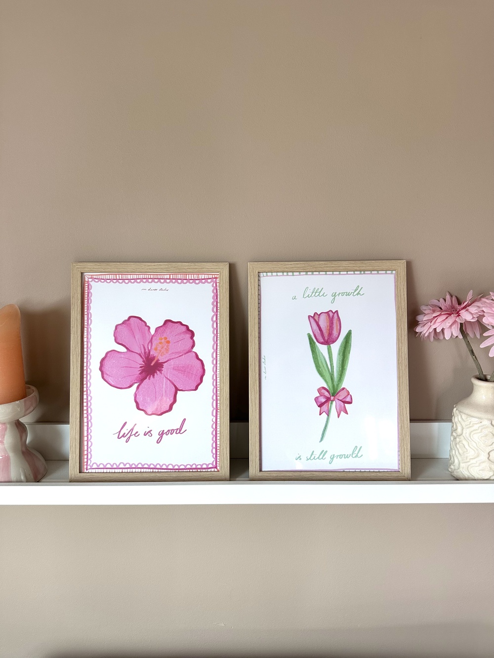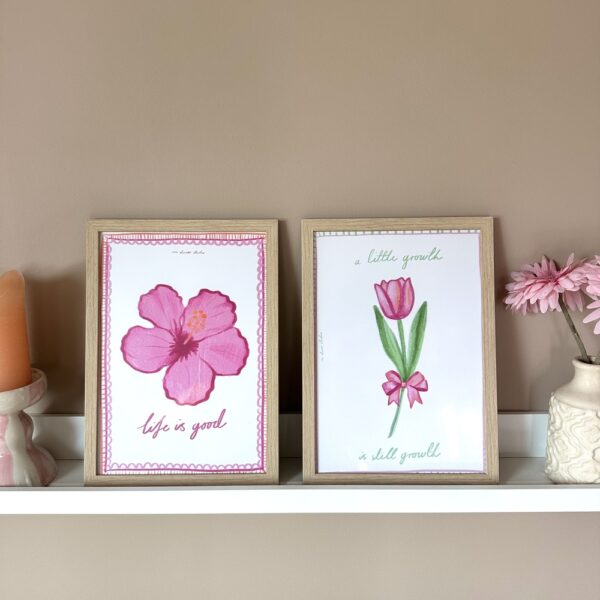 Avec sa grande fleur d’hibiscus rose fuchsia et son message inspirant, cette affiche incarne l’esprit des beaux jours et de la dolce vita. Elle apporte instantanément une ambiance douce et lumineuse à votre décoration, qu’elle soit installée dans une cuisine vintage, un salon bohème ou un coin détente.