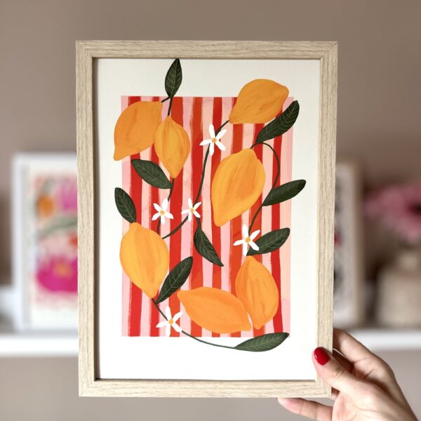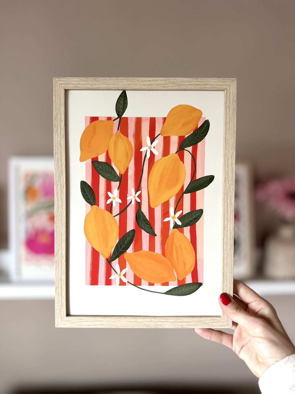 Boostez votre intérieur avec une dose de soleil et de bonne humeur grâce à l’affiche « Limonade », une illustration fruitée dessinée à la main qui célèbre l’énergie des beaux jours.