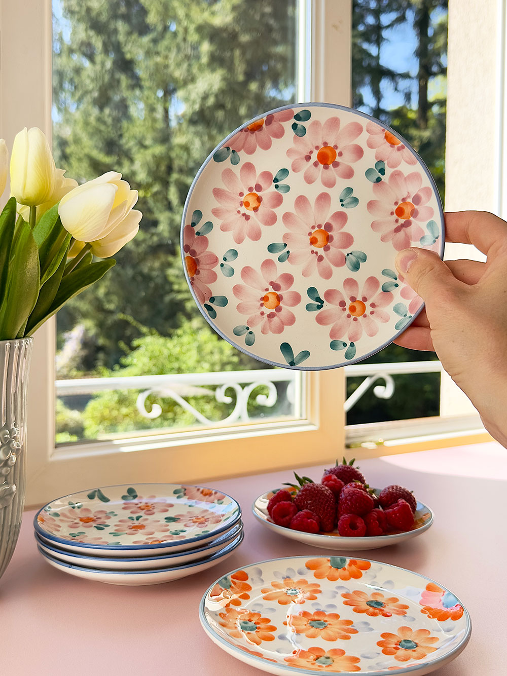 Assiette à dessert artisanale en céramique – Modèle FLORA ROSE