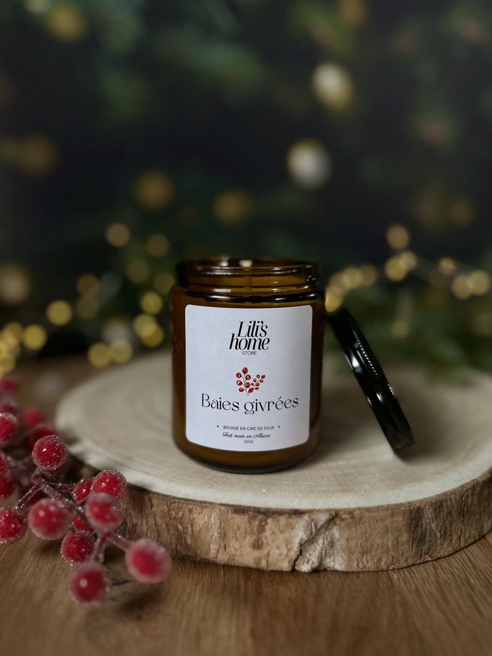 Laissez-vous envelopper par la douce magie de l’hiver avec Baies Givrées, une bougie artisanale coulée à la main dans notre atelier.