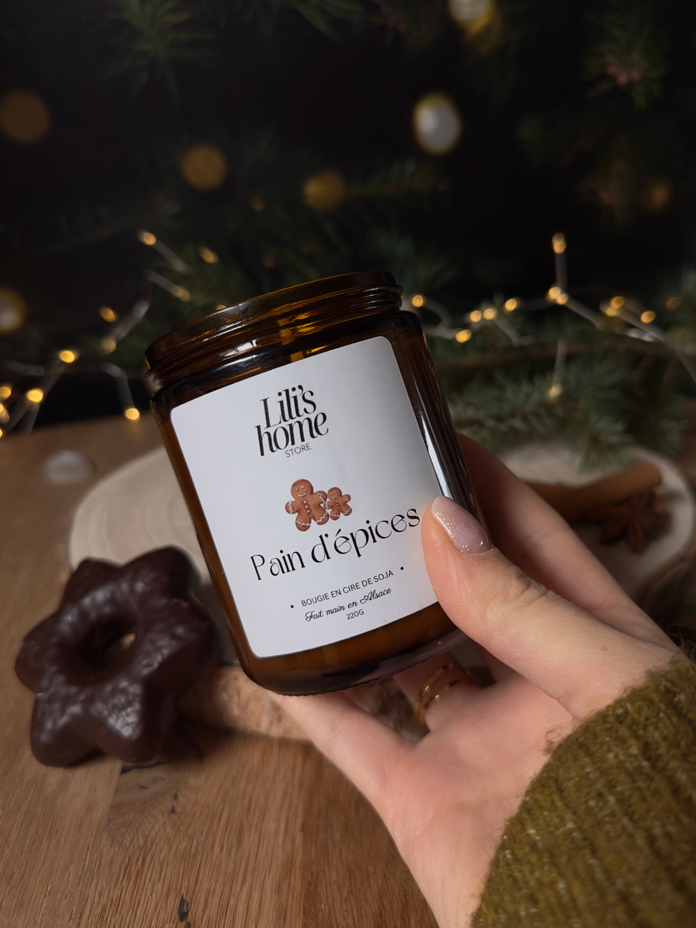 Plongez dans l’ambiance magique de Noël avec Pain d’Épices, une bougie artisanale confectionnée à la main avec amour.
