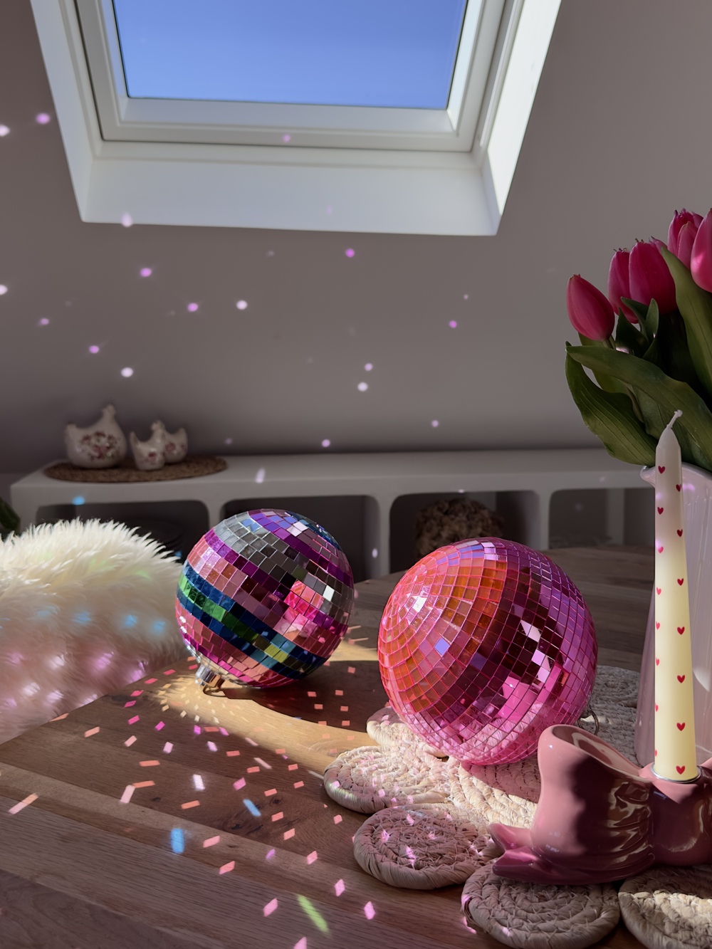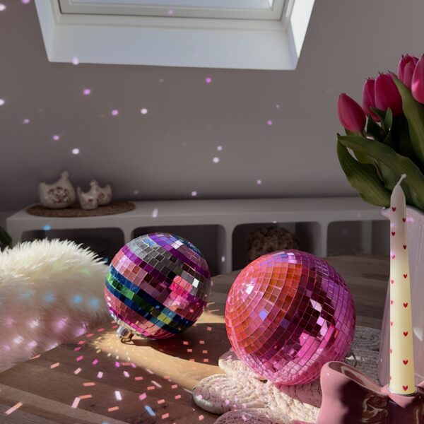 Avec son style rétro assumé et son éclat pétillant, elle transforme instantanément n’importe quel coin en mini dancefloor. À suspendre dans une chambre, un salon ou même au-dessus d’un bar, elle est parfaite pour une déco joyeuse, audacieuse et totalement feel good.