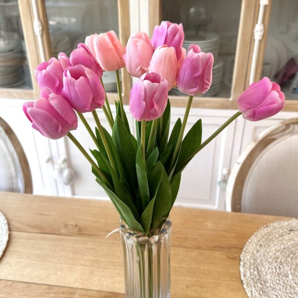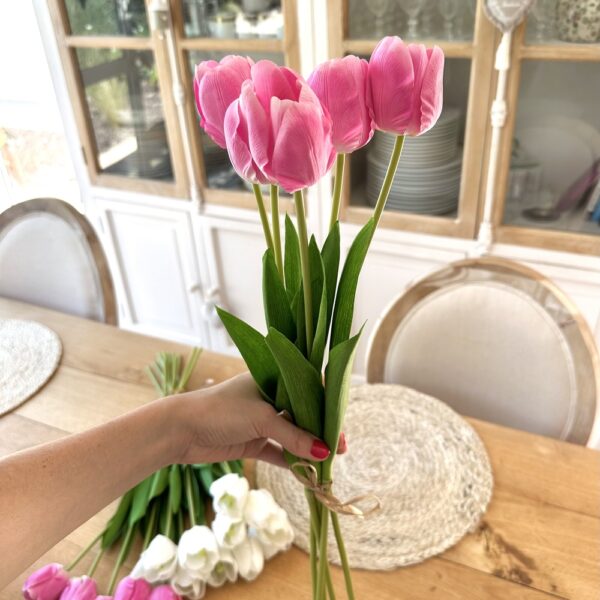 Envie d’un bouquet qui reste parfait jour après jour, sans jamais faner ? Craque pour notre bouquet de 5 tulipes artificielles au toucher doux, dans une teinte rose foncé ultra chic