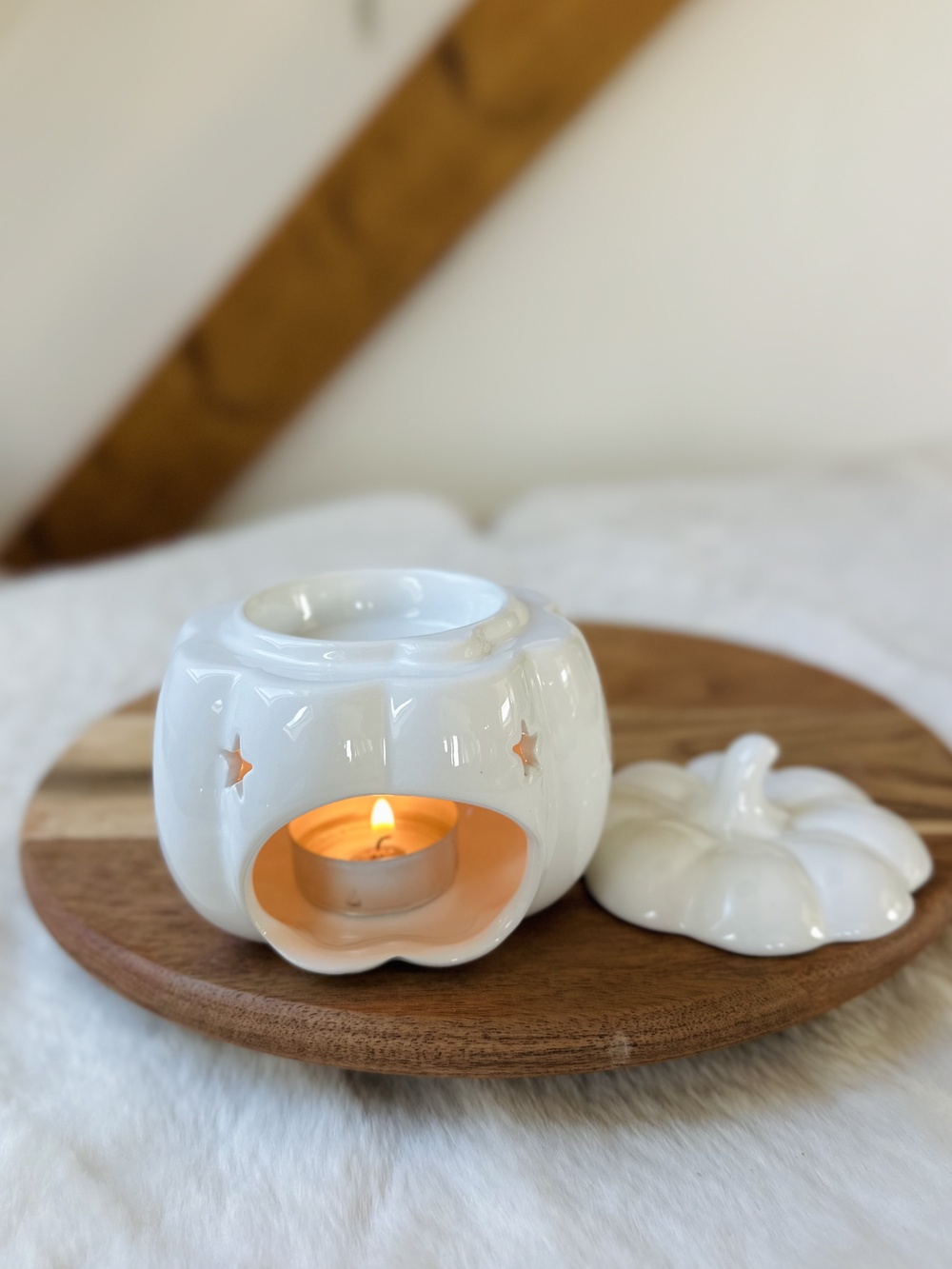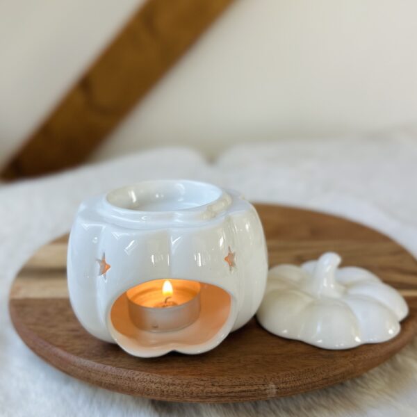 Créez une atmosphère douce et parfumée avec notre brûleur à huile en forme de citrouille blanche, spécialement pensé pour l’automne et Halloween. Orné de découpes étoilées, il diffuse une lumière chaleureuse tout en libérant vos senteurs préférées.