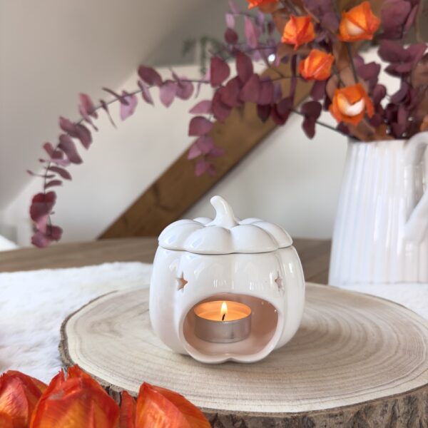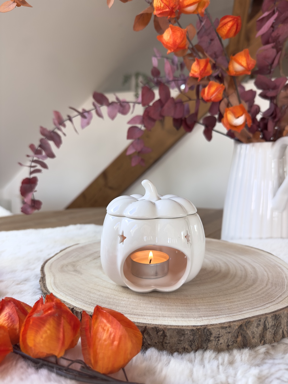 Sa forme de citrouille élégante et tendance, associée à la douceur du blanc, en fait une pièce décorative raffinée et intemporelle. Que ce soit pour une soirée cocooning, un dîner festif ou une ambiance Halloween féérique, ce brûleur à huile deviendra vite un incontournable de votre déco saisonnière