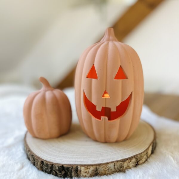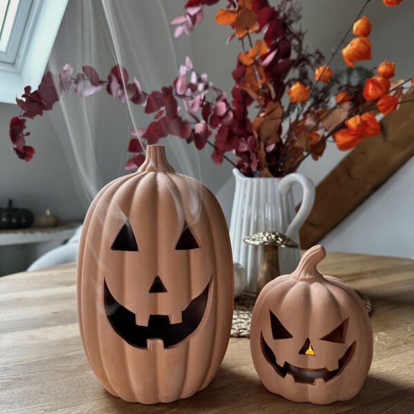 Fabriquée en terre cuite naturelle, elle allie authenticité et durabilité. Réutilisable chaque année, elle vous accompagne dans toutes vos décorations automnales et effrayantes