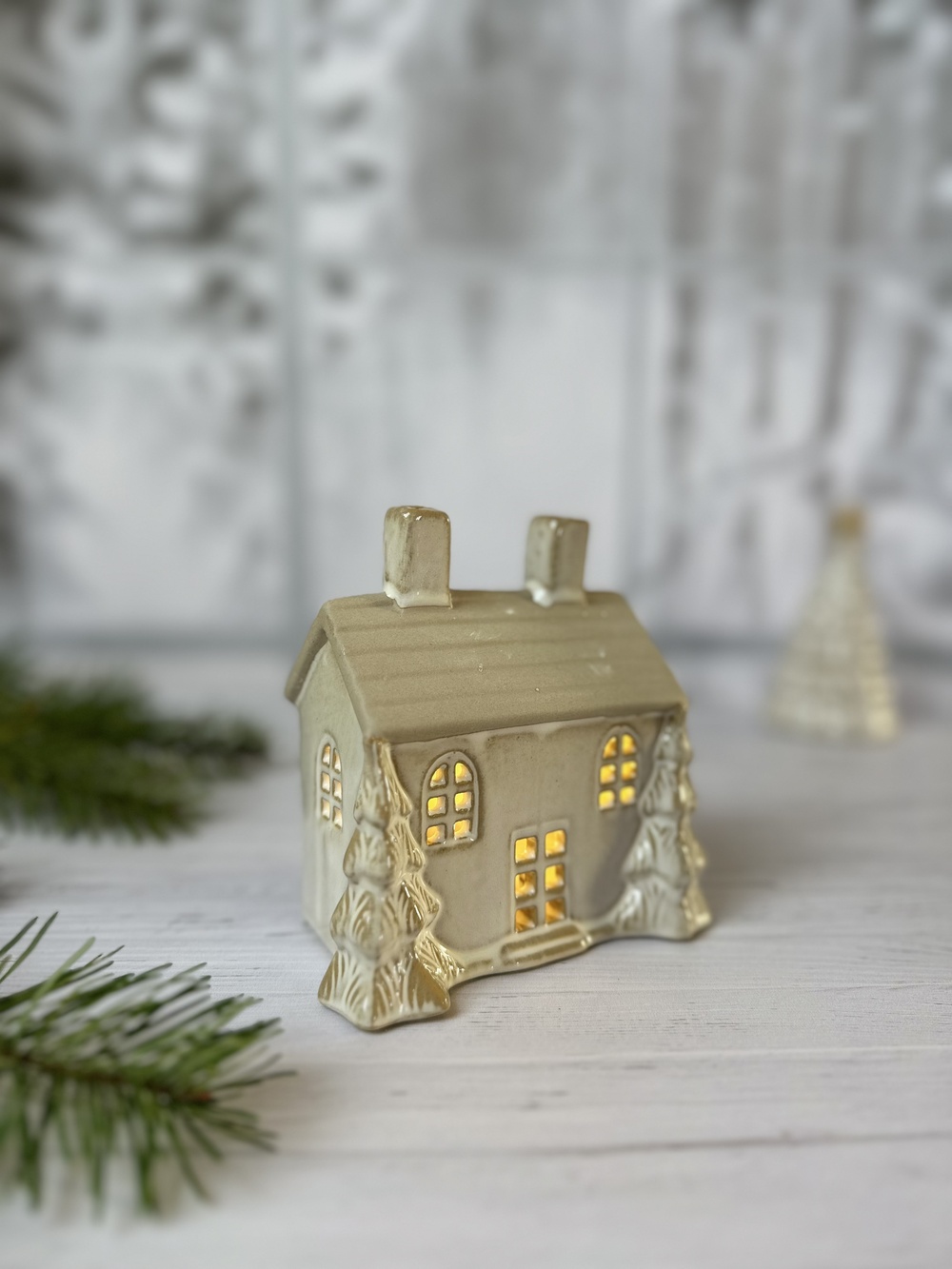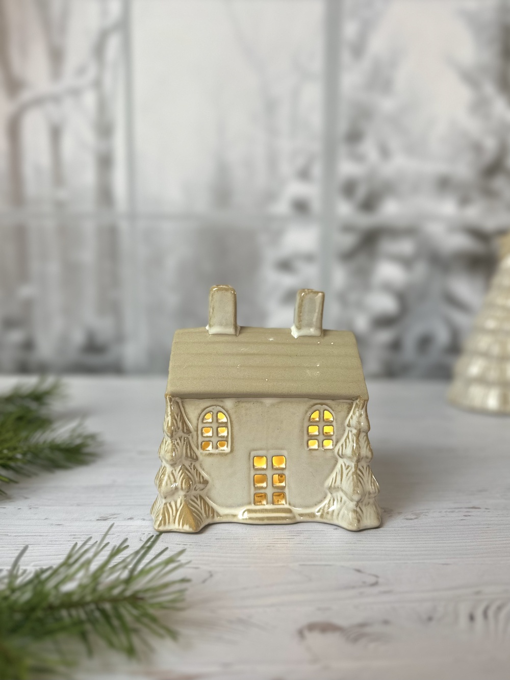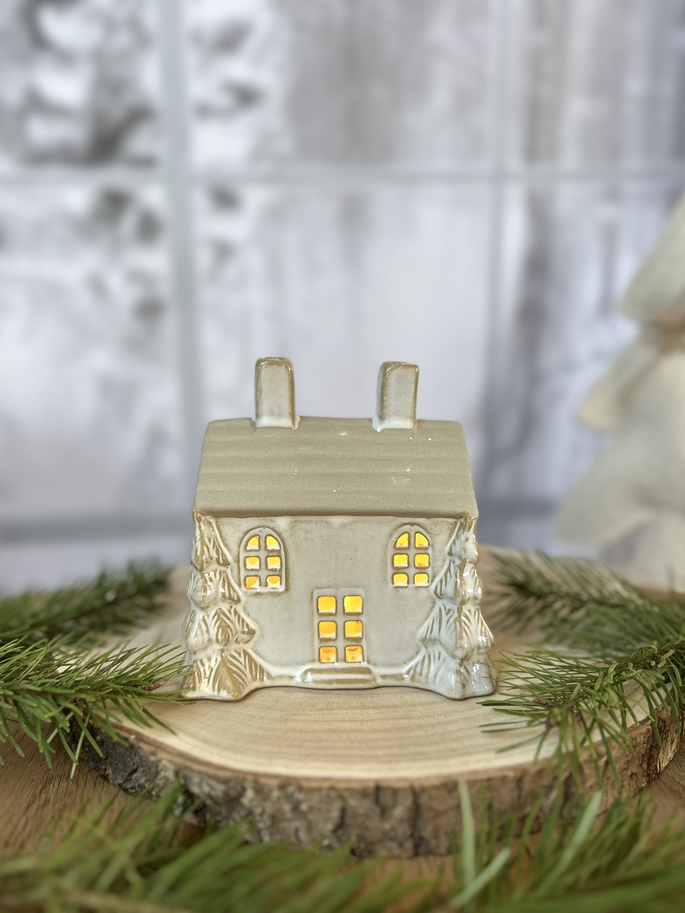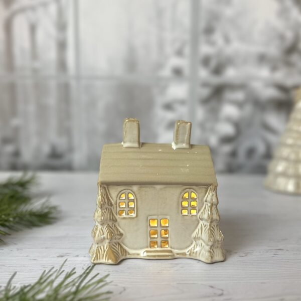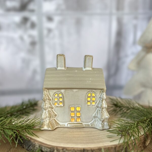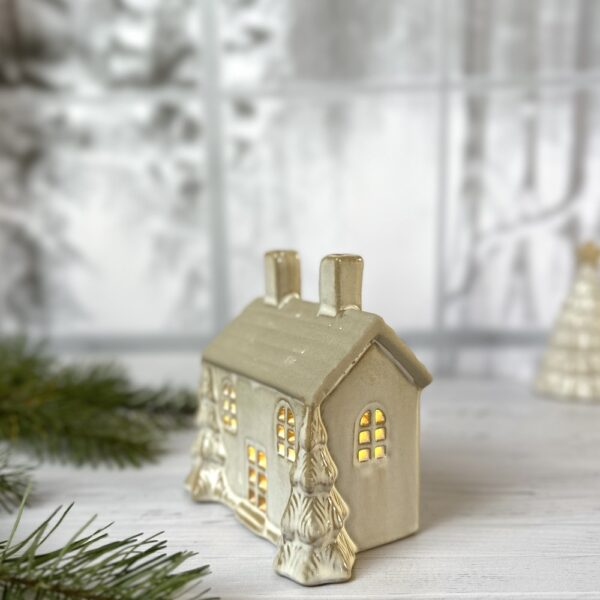 Créez une ambiance douce et scintillante avec le chalet sous bois, une délicate décoration lumineuse en céramique au charme hivernal irrésistible. Cette version plus large et compacte de la maison LED présente deux sapins 3D dorés de chaque côté, un toit brut texturé et de jolies découpes de fenêtres et de porte qui laissent passer une lumière chaude et apaisante.