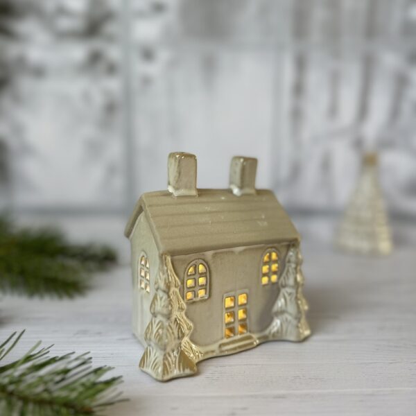 Équipée d’un éclairage LED intégré, cette petite maison semble tout droit sortie d’un village enneigé, prête à illuminer vos soirées d’hiver. Son style raffiné et ses détails dorés en font un objet de décoration élégant et intemporel, idéal pour compléter une scène de Noël ou simplement apporter une touche de magie et de sérénité à votre intérieur.
