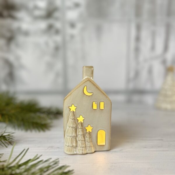 Compacte et lumineuse, la Maison des sapins est parfaite pour décorer une table, une cheminée ou une étagère, seule ou accompagnée d’autres maisons de la collection pour composer un adorable village de Noël. Un indispensable pour une ambiance chaleureuse et poétique tout au long de l’hiver.