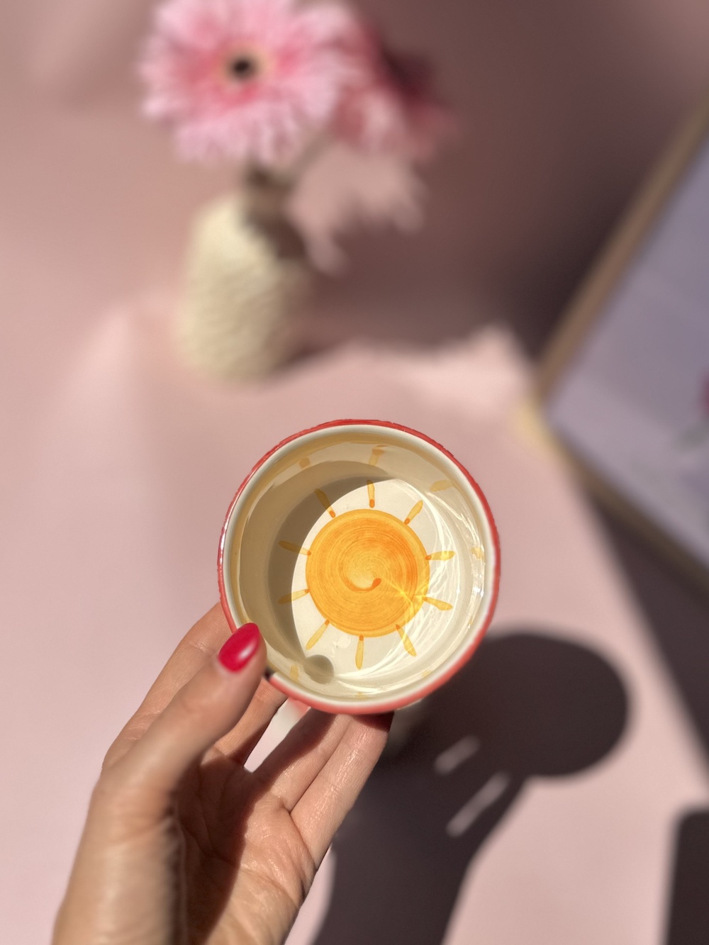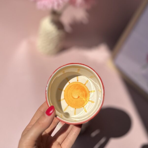Soleil jaune peint au fond de la tasse
