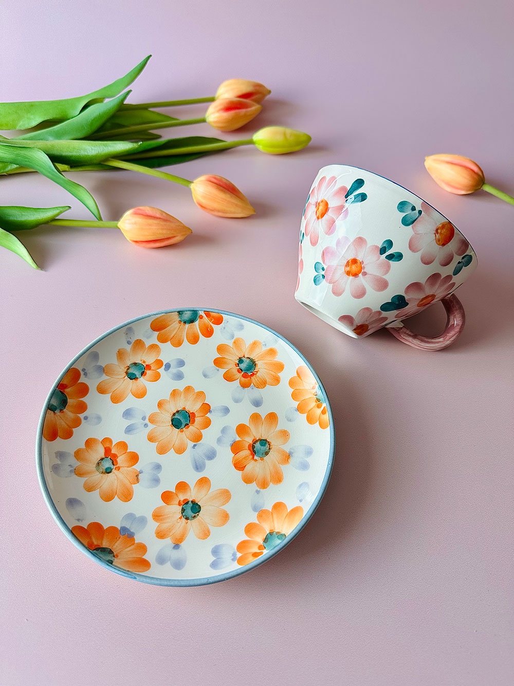 Craquez pour l’élégance florale de la tasse à thé « Flora Thé », une pièce artisanale pleine de charme et de douceur. Entièrement peinte à la main au Portugal, cette tasse en céramique haut de gamme séduit par son motif délicat de fleurs roses, subtilement contrasté par une bordure bleu ciel peinte à la main.