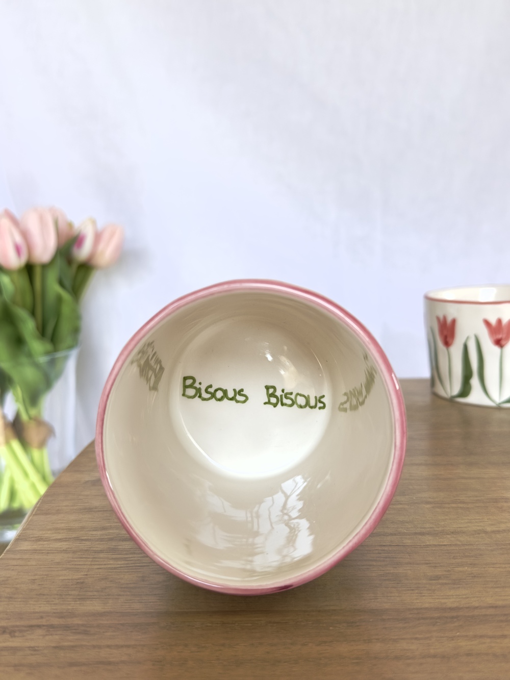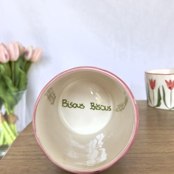 - Détails : Inscription « bisous bisous » au fond de la tasse