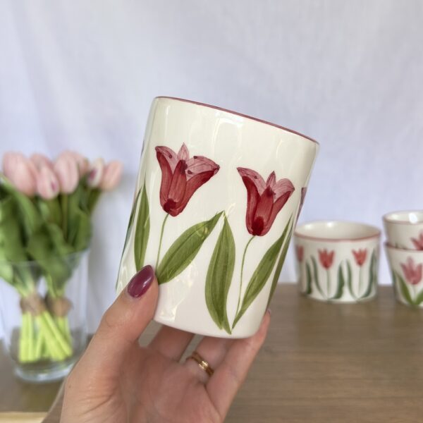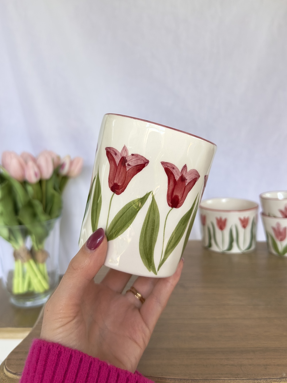 Plongez dans la douceur matinale avec « Bisous Bisous », un mug latte en céramique artisanale, façonné et peint à la main au Portugal. Avec ses dimensions généreuses de 9 x 6 cm et ces jolis motifs de tulipes rouges, ce mug est idéal pour savourer un latte crémeux ou un chocolat chaud réconfortant. Une surprise attend au fond de la tasse : l’inscription « bisous bisous », ajoutant une touche ludique et affectueuse à votre pause café. Son design authentique et sa faïence de qualité en font une pièce intemporelle pour une cuisine chaleureuse et raffinée.